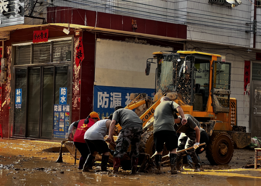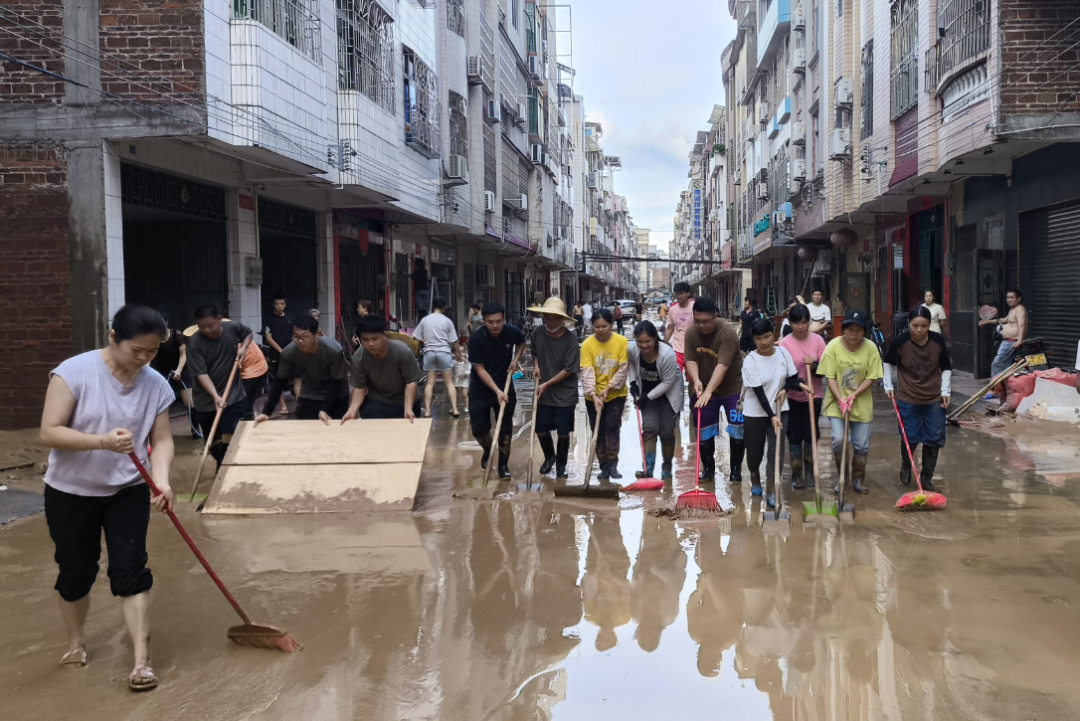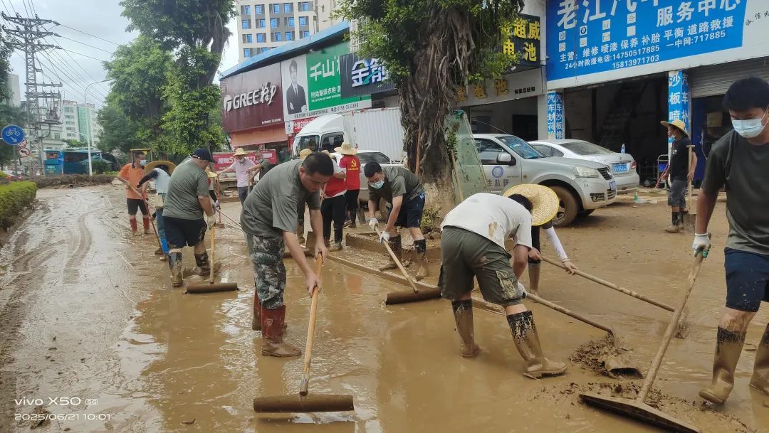 当地居民深受感动,自发为党员干部志愿者送绿豆汤、西瓜等解暑充饥食品,与大家一同开展清淤排障工作,并提供歇脚如厕场所…...这些温暖的瞬间,传递着“一方有难、八方支援”的深厚情谊,凝聚起战胜汛情的强大力量。